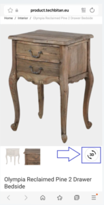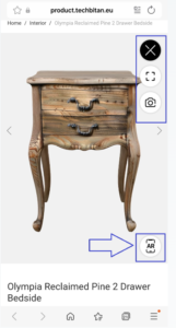 On mobile, click AR to open camera and place the product in real space